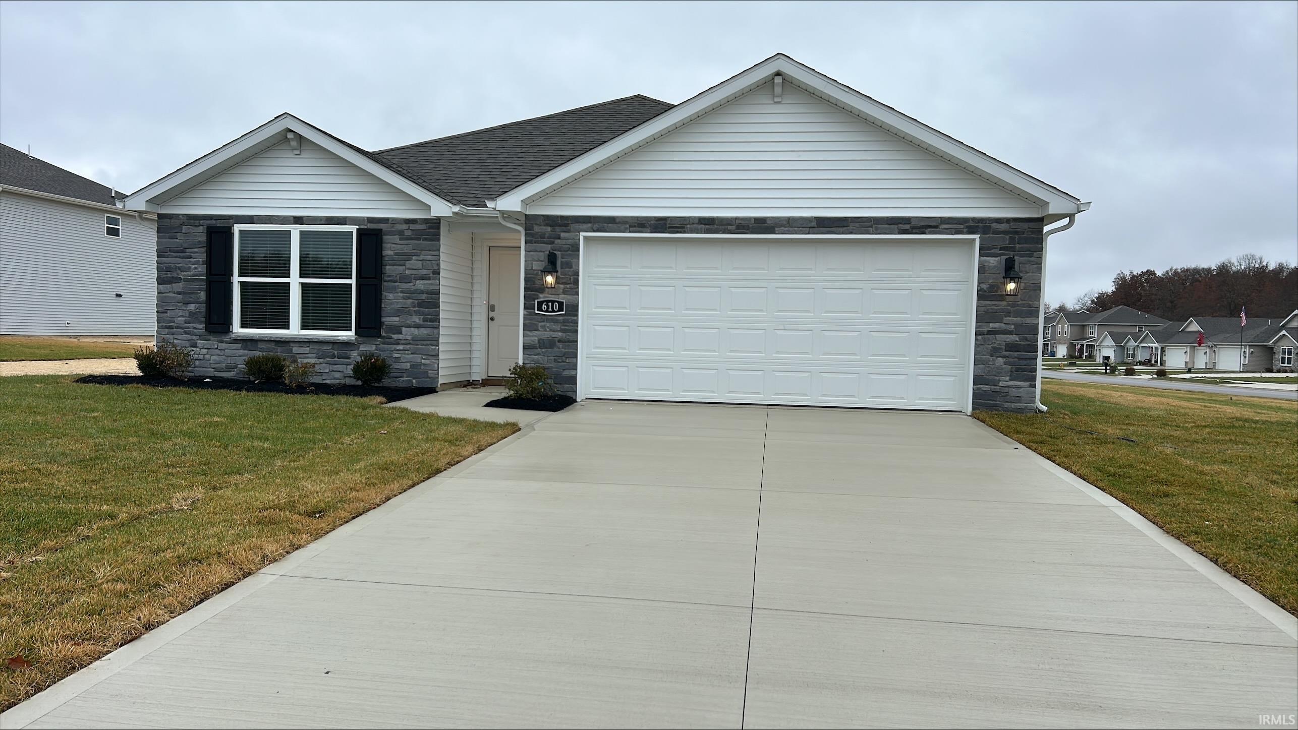 Check out 610 Malfoy Court in Bluffton, IN—a charming new home in the Parlor Bluffs community. This home sits on a large corner lot, offering convenience and comfort for everyday life. Step inside this 1,825-square-foot home and find four spacious bedrooms and two full baths. At the front of the home, two secondary bedrooms share a hallway bath. A third bedroom is positioned near the laundry area and garage entry. The open living area connects the great room, dining nook, and kitchen for effortless flow and flexibility. In the kitchen, you’ll find everything you need and more—elkins sarsaparilla cabinets, backsplash, lyra quartz countertops, and a generous island with a built-in sink and dishwasher. The layout is perfect for prepping meals or catching up with loved ones while cooking. A walk-in pantry gives you the space to stay stocked and organized. Your owner’s suite is tucked in the rear of the home, creating a private getaway. The bath includes a double-sink vanity, walk-in shower, and a huge walk-in closet with plenty of room for storage and comfort. Come see why Parlor Bluffs is one of Bluffton’s favorite neighborhoods! Photos representative of plan only and may vary as built.