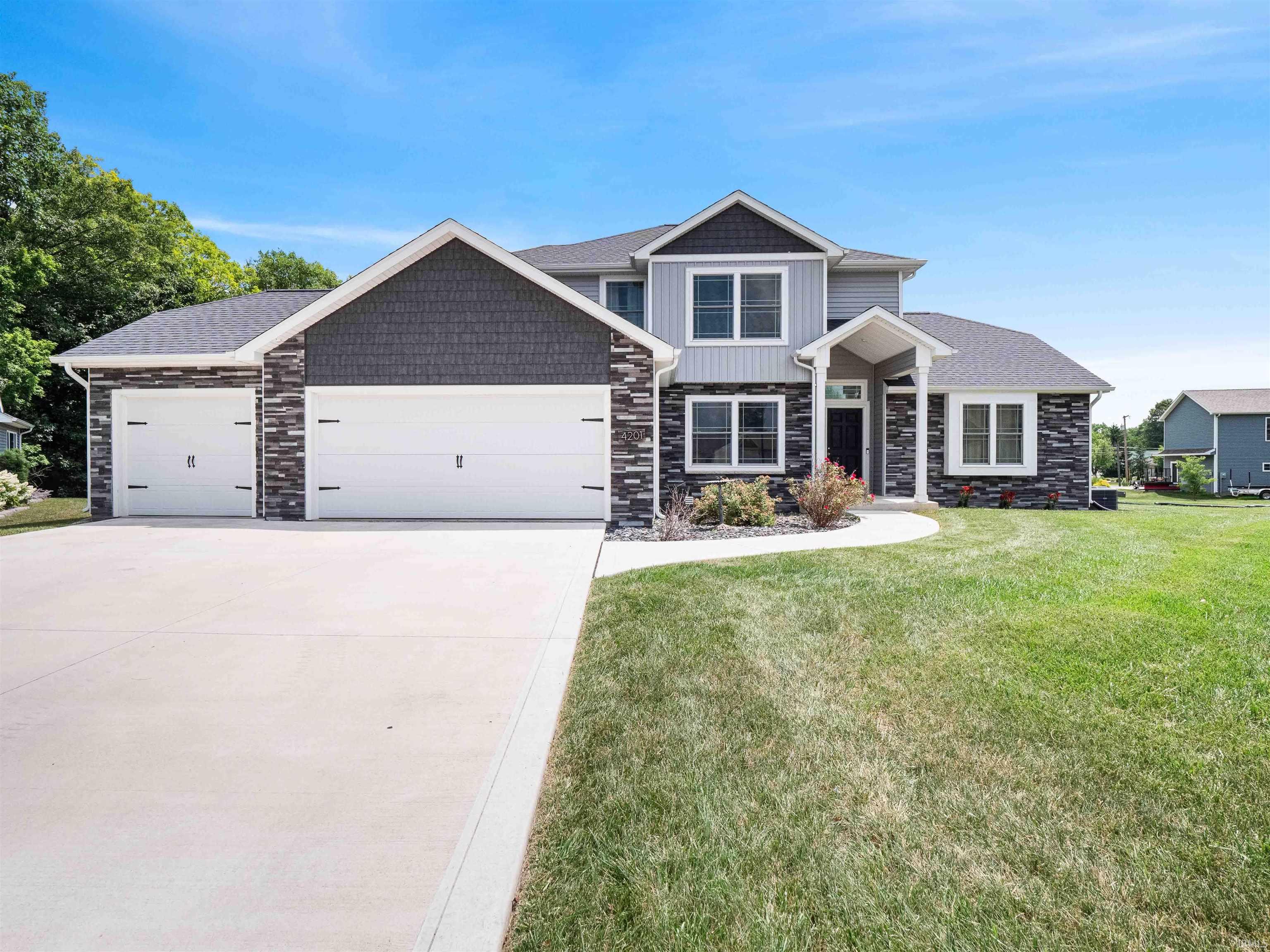 OPEN HOUSE Saturday 10/4 from 2-4pm. Stunning 4 bedroom 3.5 Bathroom home with over 3100 sq. ft. of Finished Living Space located in a quiet neighborhood on a large cul-de-sac lot. You will love this open concept home with it's vaulted ceilings and large windows that allow natural light to flow throughout. The Great Room also features a gas log fireplace and LVP flooring which flows throughout the most of the main level. The Kitchen features a large center island with tons of cabinet space and stainless steel appliance which are included. The Primary Bedroom is located on the first level and features a dream bath with double vanity sinks, stand up shower and large garden tub for relaxing after a hard days work. The 3 additional upper level bedrooms are generous sizes and share a full bath. The Daylight Finished basement is all set up for entertaining and staying in shape with it's home gym and another Full bathroom along with extra storage in the mechanical room. Don't miss the 3 car garage with pull down attic for more storage. The main level laundry room has a custom crafted locker drop one. Washer and Dryer are also included in the sale. This TURN KEY home is close to shopping, restaraunts plus it's only 7 minutes away from downtown Fort Wayne and the riverfront re-development. Avg utilities: Gas $100/month, Elec $200/month, Water/sewer $90/month